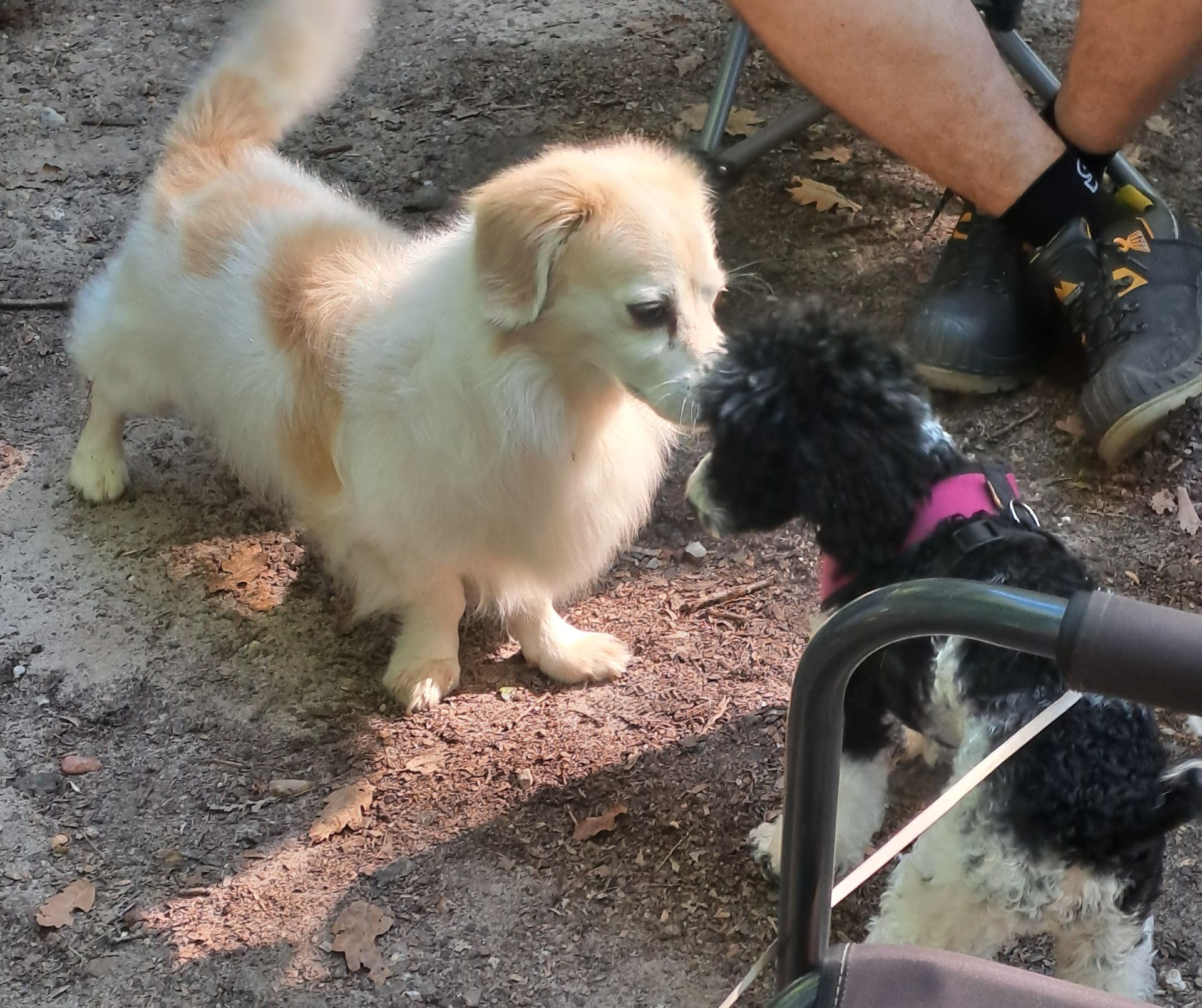 okamžitě hledal dávkovač pamlsků - rozuměj Tomíka ten samozřejmě zmizel do lesa na houby