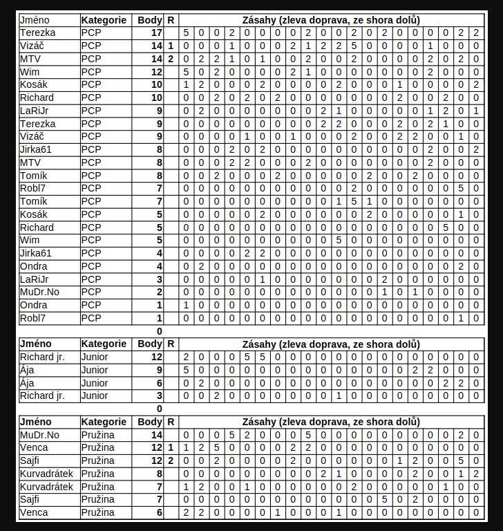 sjelo se nás 18 střelců - velmi slušný myslím škoda že nedorazil Lafetty a Pivi ovšem chápu že lov ryb je víc než lov much