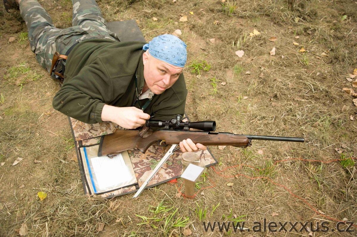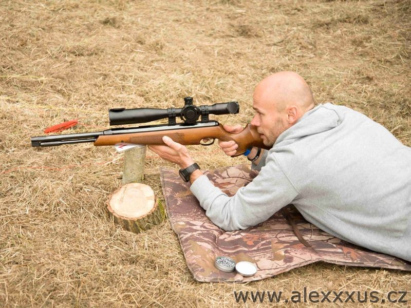 Druhá kategorie už poněkud prestižnejší, tedy puška s dřevěnou pažbou a puškohledem